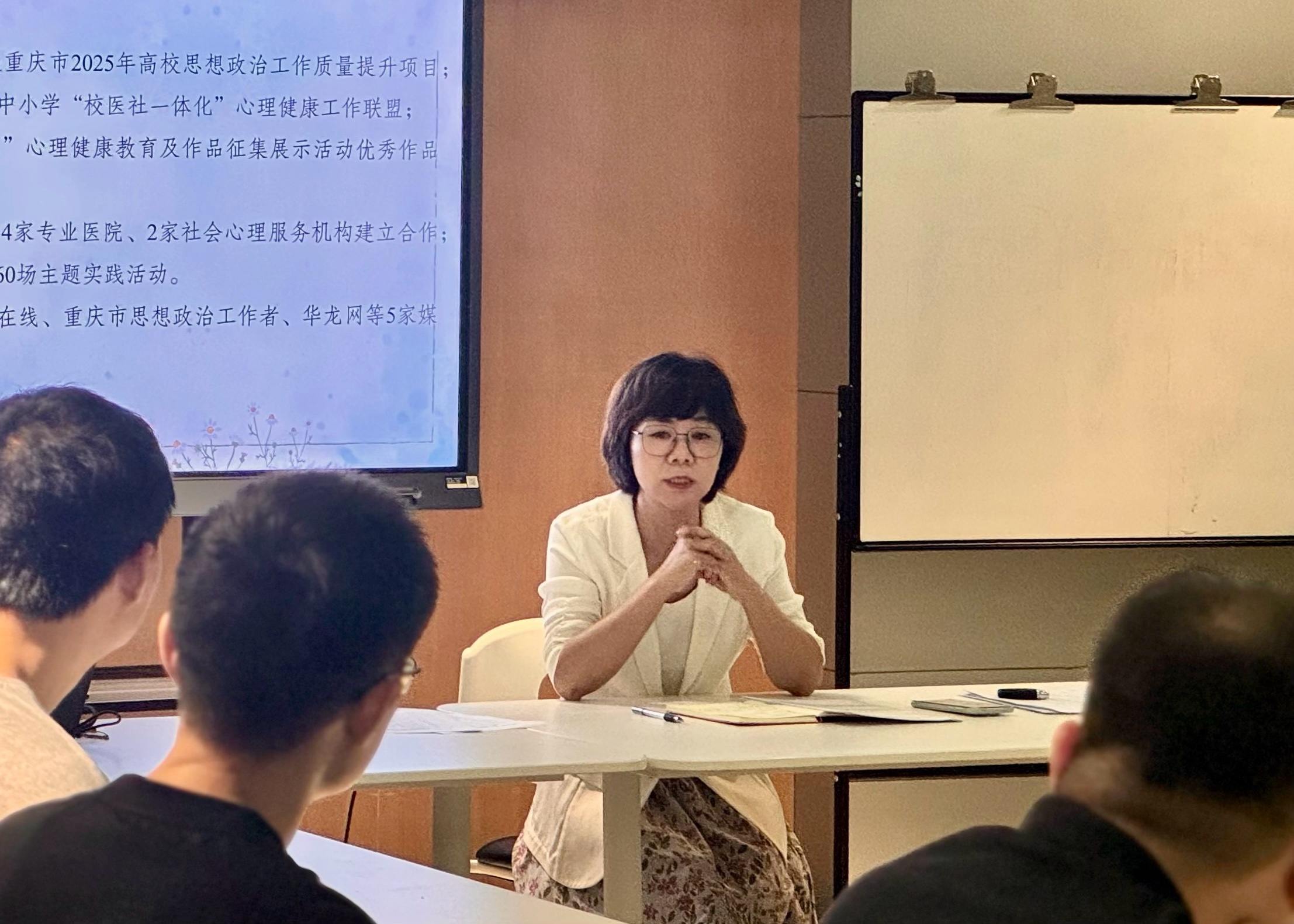 在 2025 年 10 月 10 日 “世界精神卫生日” 到来之际,为进一步筑牢校园心理健康防线,切实关注新生适应期心理需求,党委学生工作部于当日上午在南岸校区第三办公楼团辅室召开 “润心赋能” 2025 年秋期心理健康工作会暨新生适应问题研讨会。会议由副主任马曦主持,学工部副部长、学生心理咨询服务中心主任金春寒、各学院心理辅导分中心负责人、专兼职心理咨询师 20 余人参会。