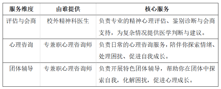 学校心理健康服务形成清晰的服务矩阵,让每一份求助都能得到精准回应: