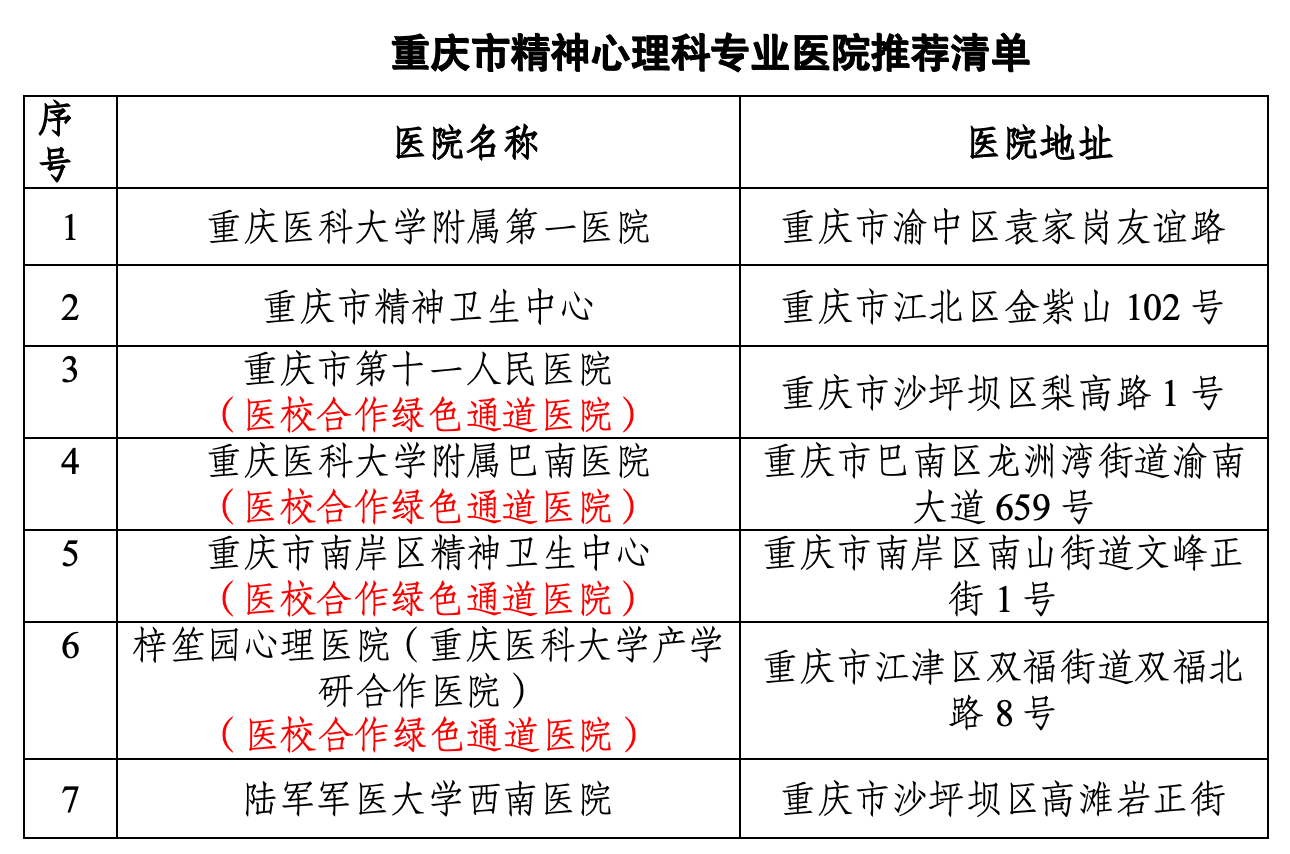 3.专业医院精神科、重庆市卫生服务热线:96320转1
