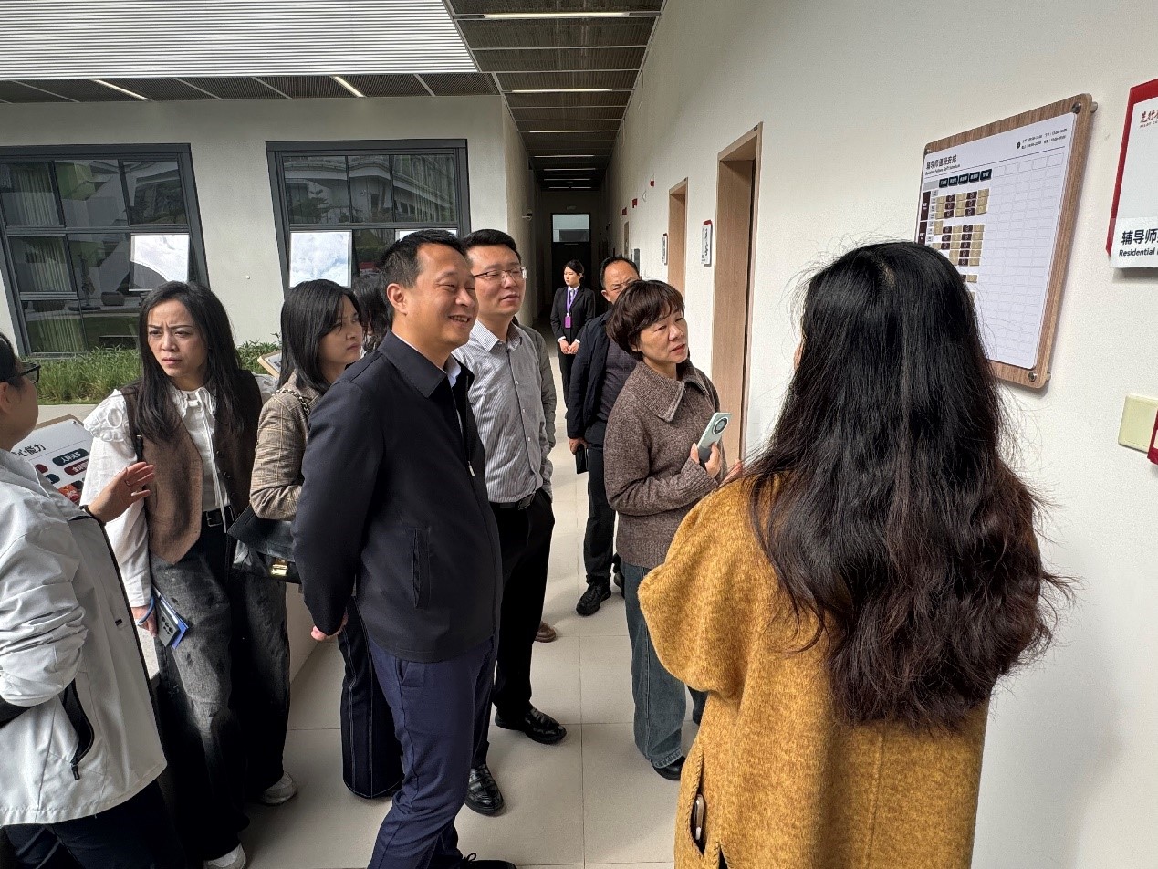 深圳理工大学对此次调研高度重视,教务长赵伟、学生事务处处长李明,相关书院负责人及书院辅导师组成接待组,热情迎接重庆交通大学调研组一行。调研组先后前往深圳脑解析与模拟重大科技基础设施实地参观,详细了解该设施的建设背景、科研定位和运行模式,感受深理工浓厚的科研创新氛围;随后,前往曙光书院实地参观书院学生宿舍、公共学习空间、文化活动阵地等功能区域,近距离了解书院环境布置、特色文化营造和日常管理运行情况。实地参观结束后,双方围绕书院制建设开展专题座谈交流。