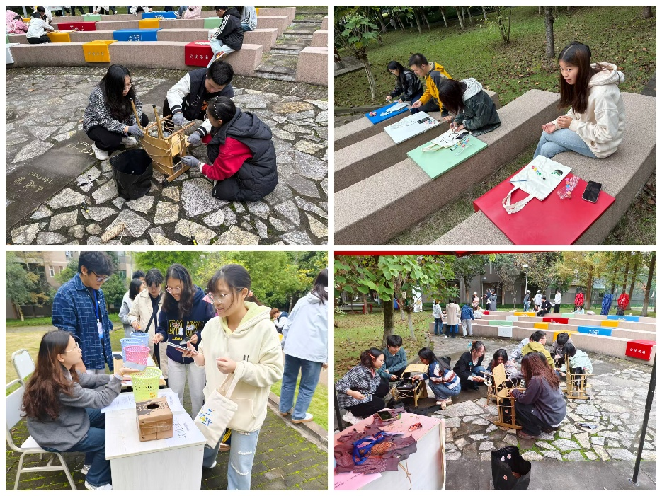 本次“心灵减碳计划——低碳疗愈游园会”以低碳实践为载体,推动心理健康教育走出课堂、融入生活。活动通过一系列具身化的环境互动设计,引导同学们在旧物改造、艺术创作与正念体验中,将身体行动与心理调适深度融合。这不仅帮助同学们学会觉察与表达情绪,也将绿色、节约、友善的生活方式内化为一种积极的心灵应对策略,织密了校园心理支持与朋辈陪伴的温暖网络。