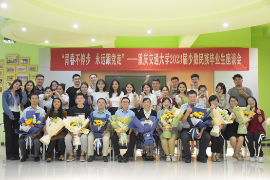 座谈会上,即将奔赴工作岗位的毕业生代表姑丽胡玛尔·吾布力颇有感触地说:“一路走来最感谢的是老师的培养,从提交入党申请书的那天开始,我的每一次的成长都离不开老师的教导。在以后的工作中我会更加严格地要求自己,拼搏进取、追求卓越,认真学好相关知识,积极投入到家乡的建设中。”古丽巴努尔·艾山江同学动情地回顾了自己四年的大学生活,表示自己难以忘怀参加学校举办的“民族团结一家亲 我与祖国同庆生”、“民族团结一家亲 粽香情浓迎端午”、“石榴课堂四六级提高班”等一系列活动的美好瞬间,真心地感谢学校的培养、感谢老师的教导。买克丽亚·阿里木同学说:“在交大足球队的生活中收获很多,从校级比赛一路踢到市级比赛,2021年获得重庆市大学生足球比赛亚军,也获得了重庆市大学生足球比赛体育道德风尚奖先进个人等荣誉,记忆犹新的是每次出去比赛,教练无微不至的关心,如亲人般的关爱,让我感受到了臻臻至至的温暖。”